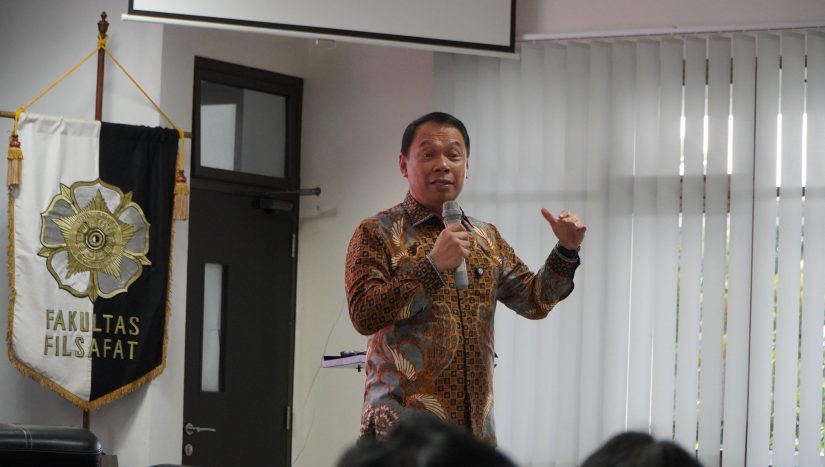 Fakultas Filsafat Universitas Gadjah Mada menyelenggarakan Studium Generale bagi mahasiswa baru Program Sarjana, Magister, dan Doktor Filsafat Tahun Akademik 2025/2026. Kegiatan yang berlangsung Selasa (19/8) di Ruang Sidang Persatuan Fakultas Filsafat ini menghadirkan narasumber Prof. Dr. Drs. Rivan Achmad Purwantono, S.H., M.H., alumnus Fakultas Filsafat UGM angkatan 1985, dengan topik “Filosofi Modern dalam Manajemen.”