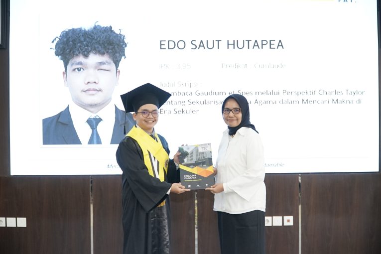 Perwakilan wisudawan, Edo Saut Hutapea, yang juga menjadi lulusan terbaik dengan IPK 3,95 dan masa studi 4 tahun 3 bulan 8 hari, mengajak rekan-rekannya untuk merefleksikan makna kelulusan sebagai sarjana filsafat. Ia menekankan bahwa di tengah label dunia kerja yang dilekatkan pada lulusan perguruan tinggi, seorang sarjana filsafat perlu terus bertanya secara kritis apakah ia hadir sebagai manusia seutuhnya atau sekadar sebagai fungsi.